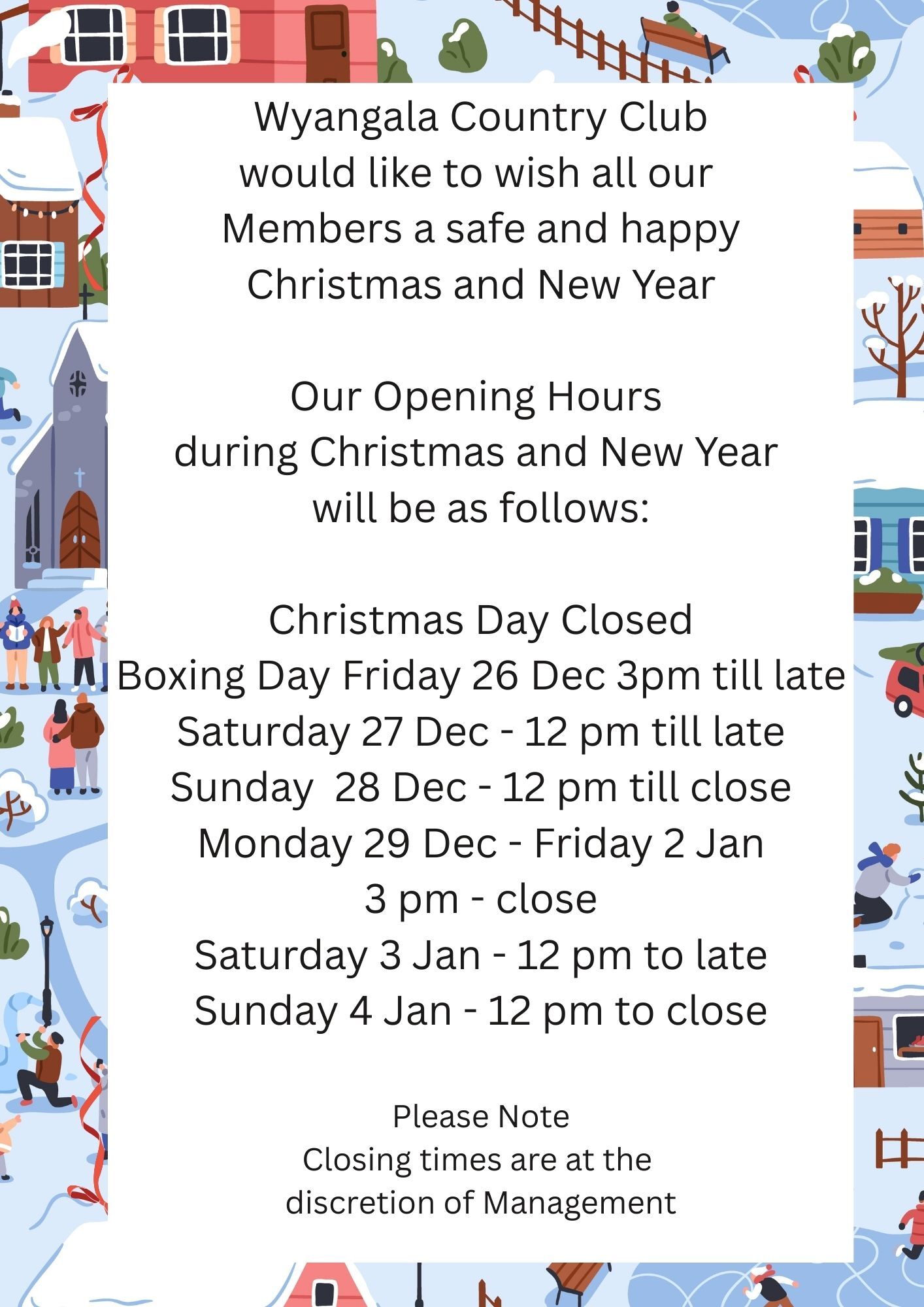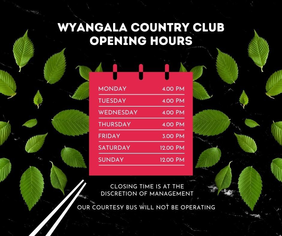 The Wyangala Country Club proudly supports and practices Responsible Service of Alcohol in accordance with the law.